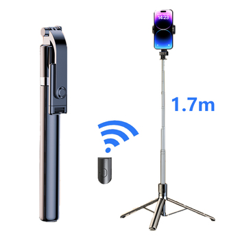 1.7 Meter Verstelbaar Roestvrijstalen Drie-In-Één Mobiele Telefoon Statief En Selfiestick Draadloos Afstandsbedieningslicht